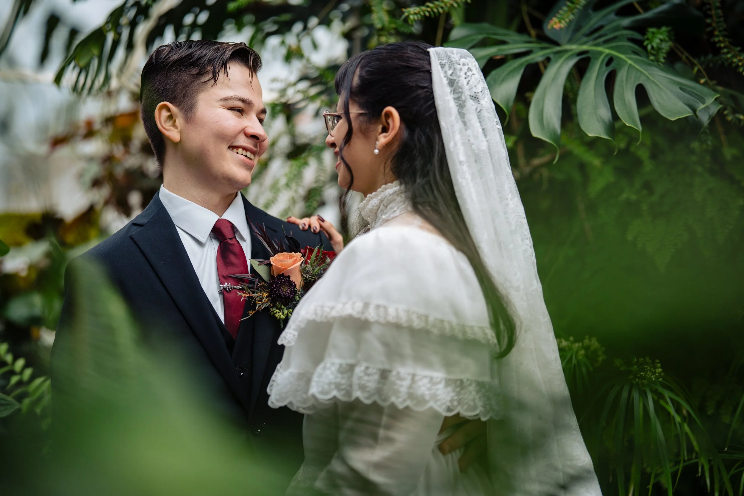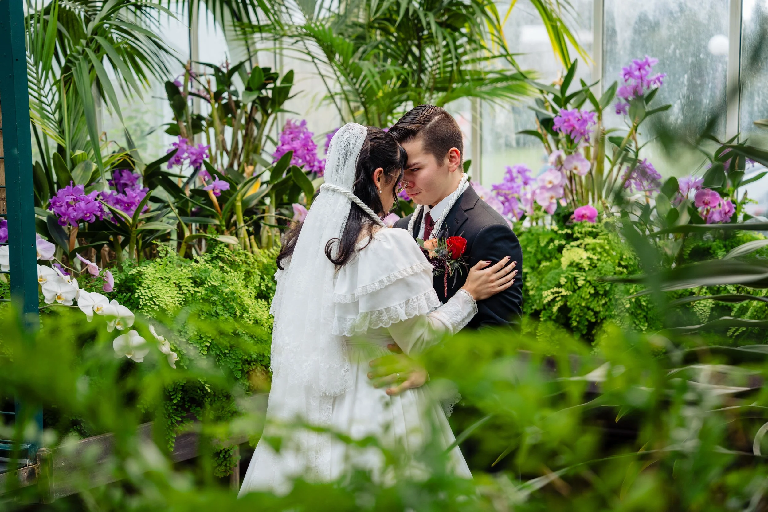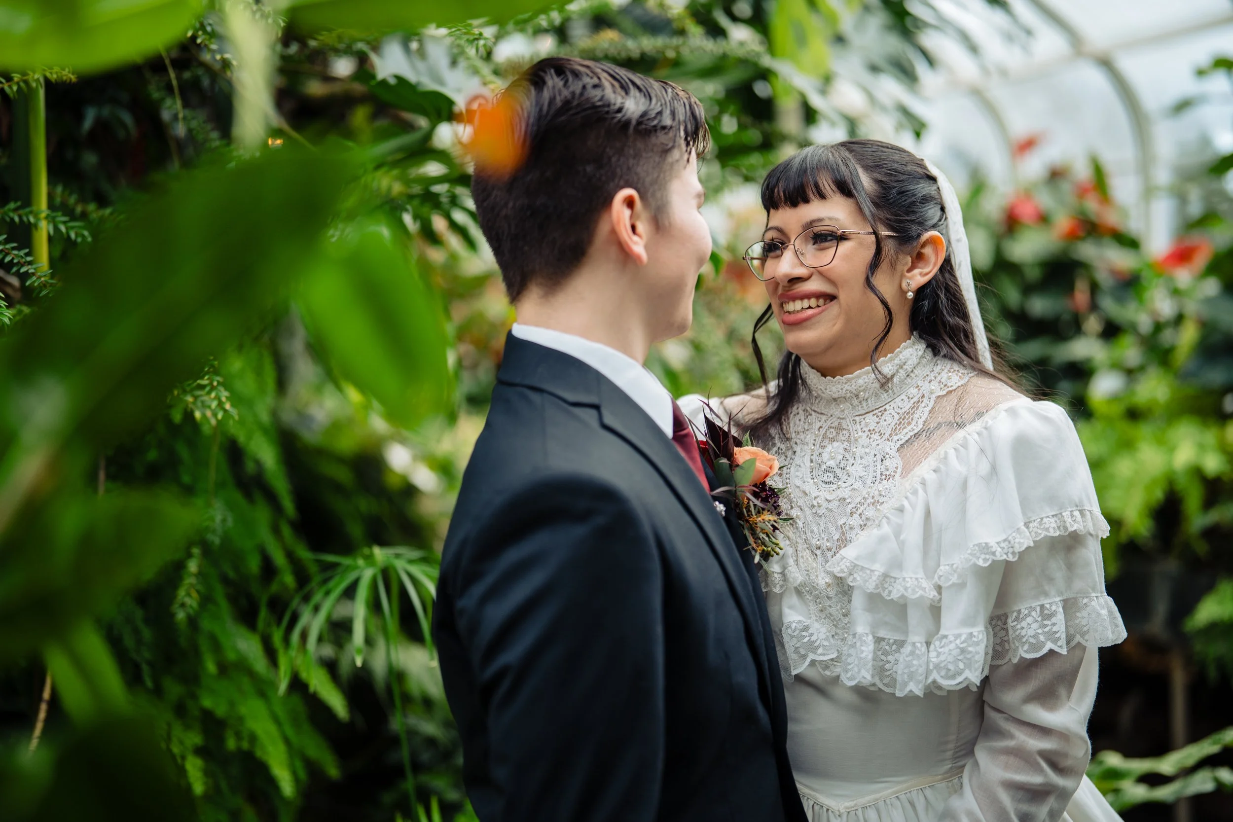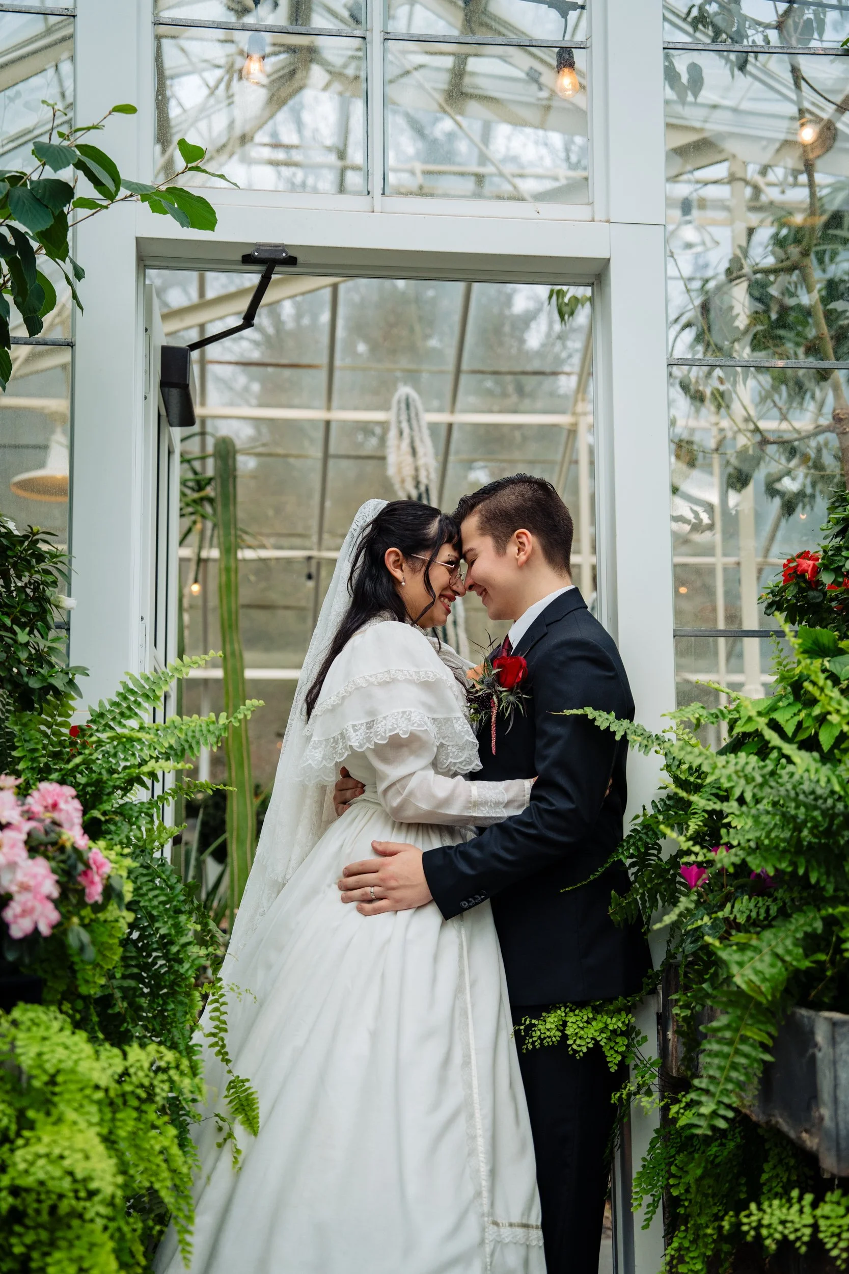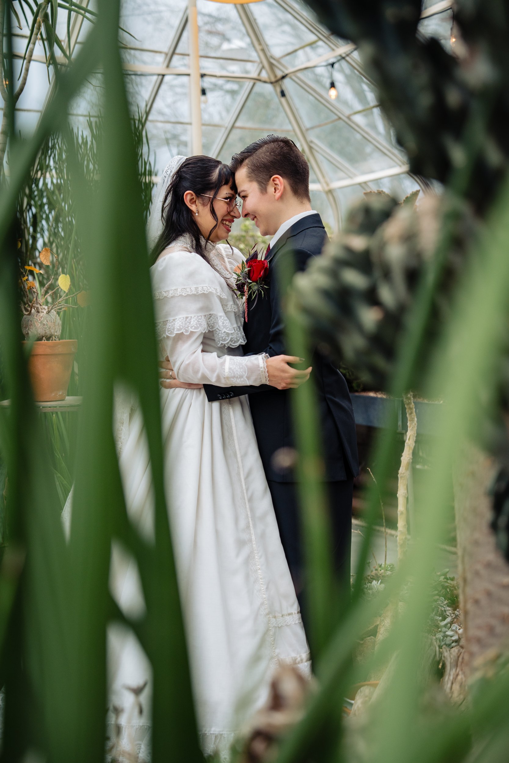 Wedding portrait in the Volunteer Park Conservatory just after their elopement